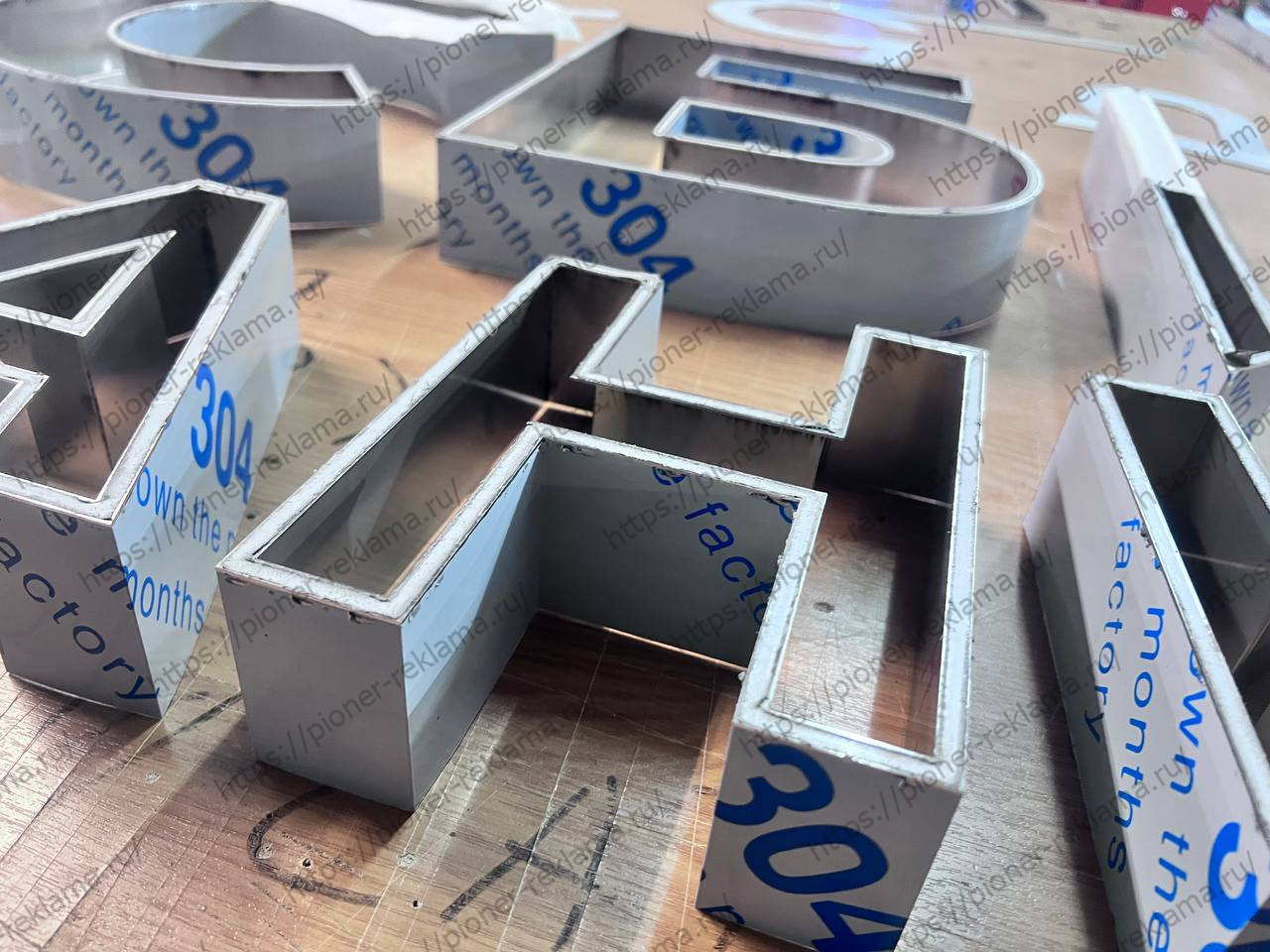 Сварка выполнялась методом TIG (аргонодуговая сварка) — технологией, применяемой в авиастроении. Такой подход исключил деформацию металла при нагреве и позволил получить швы, которые после полировки становятся невидимыми. Задник корпуса буквы усилили ребрами жесткости из алюминиевого профиля — это повысило устойчивость конструкции к ветровым нагрузкам до 120 км/ч без увеличения толщины металла.