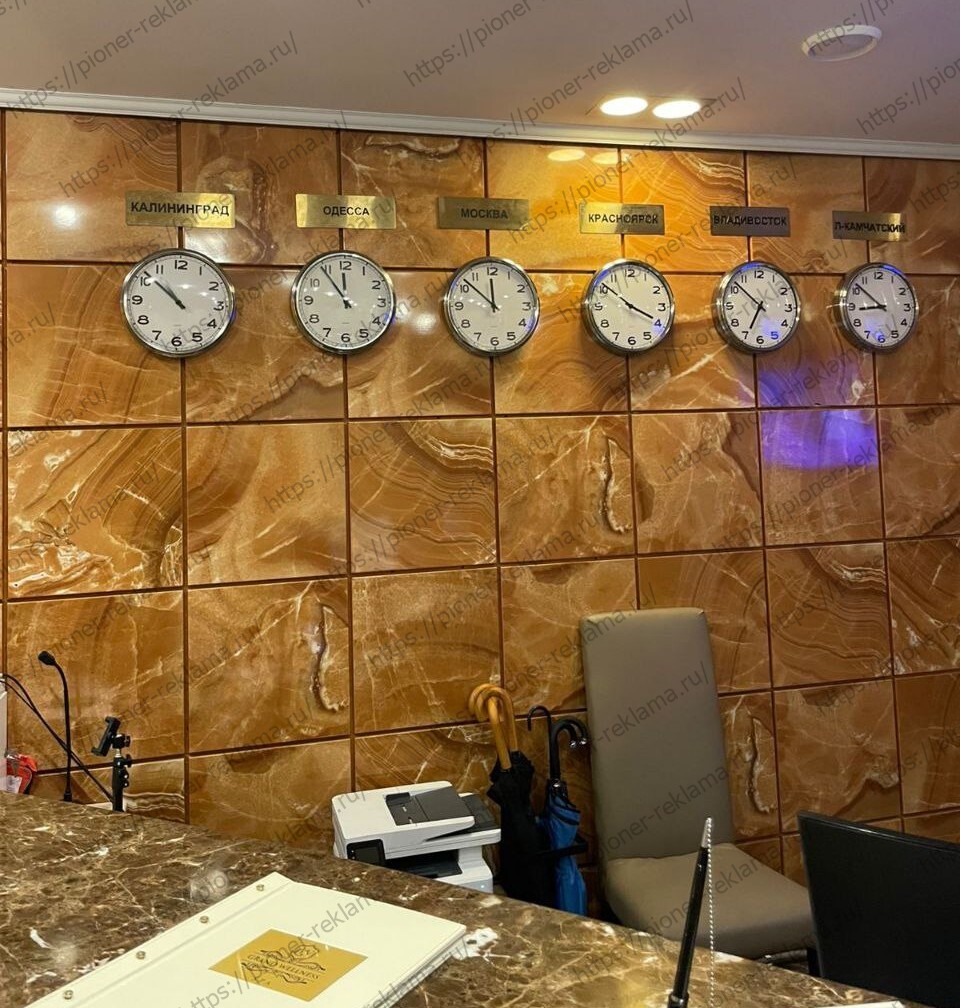 В работе мы использовали только современные материалы и технологии. Основа — лист нержавеющей стали AISI 304 толщиной 3 мм, гарантирующий абсолютную стабильность формы даже при интенсивной эксплуатации. Покрытие под золото наносилось методом ионно-плазменного напыления — технологией, применяемой в авиастроении, что обеспечило не просто цвет, а структурную защиту от царапин и потускнения. Гравировка на металлической табличке выполнялась с точностью до 0,1 мм: названия городов — от Санкт-Петербурга до Сочи — получили рельефную фактуру, которую хочется потрогать. Табличка на металлической ножке была спроектирована так, чтобы создавать эффект парения — лёгкость вопреки весу металла. Все держатели для табличек металлические изготавливались в едином стиле, образуя гармоничную композицию. Табличка металлическая односторонняя идеально вписалась в архитектуру стойки регистрации, не перегружая пространство.