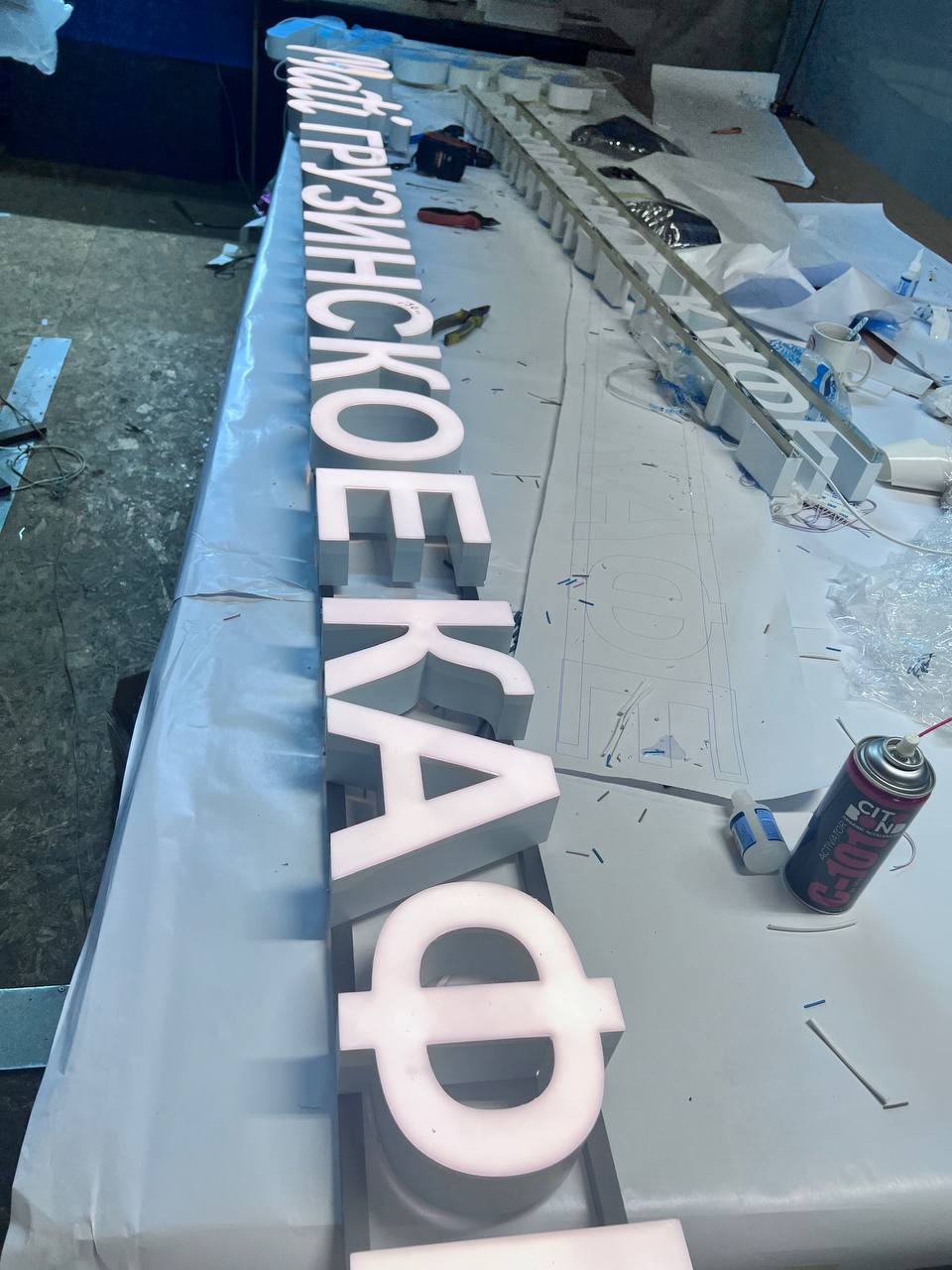 Какие современные технологии и материалы могут быть использованы для создания объемных букв, чтобы они гармонично вписывались в атмосферу грузинских ресторанов и кафе?
