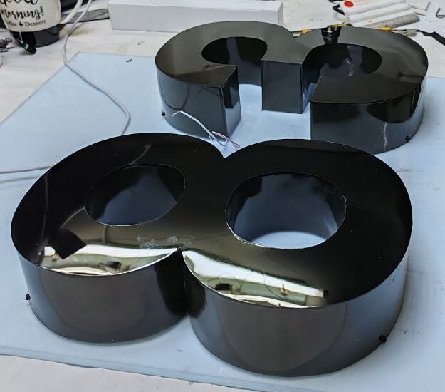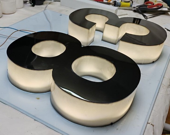 • Привлечение внимания: Объемные цифры с торцевым свечением выделяются на фоне других вывесок и рекламы, что помогает привлечь внимание потенциальных клиентов.
