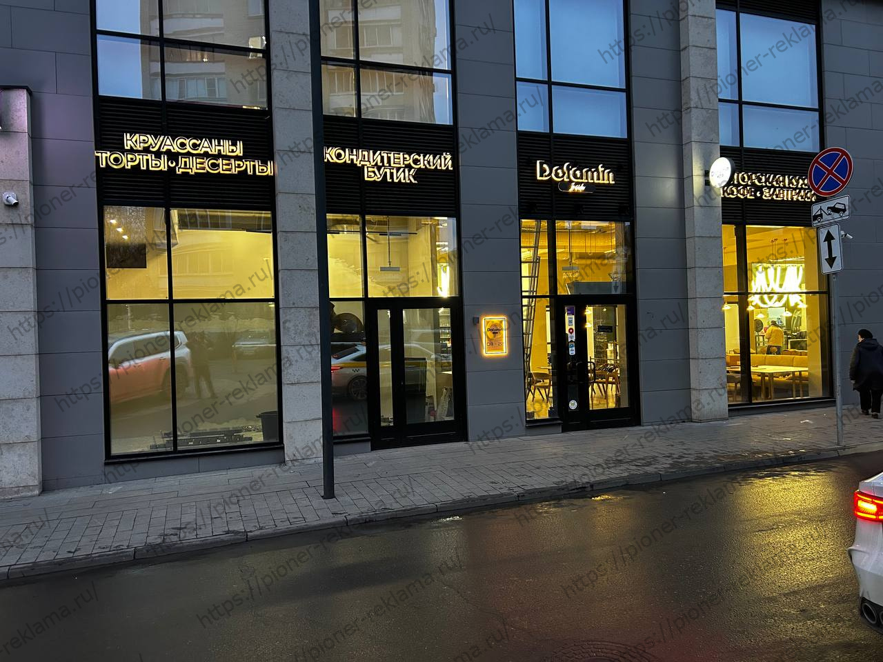 Именно такую задачу доверили нам владельцы изысканного кондитерского бутика DOFAMIN — создать не просто вывеску, а настоящее произведение уличного искусства, которое будет работать на узнаваемость бренда 24 часа в сутки. В компании «Центр Рекламных Услуг №1» мы восприняли этот заказ как вызов мастерству: каждая деталь должна была говорить о безупречном вкусе, каждая линия — о надежности, каждый проблеск света — о тепле, которое ждет гостей за дверью.