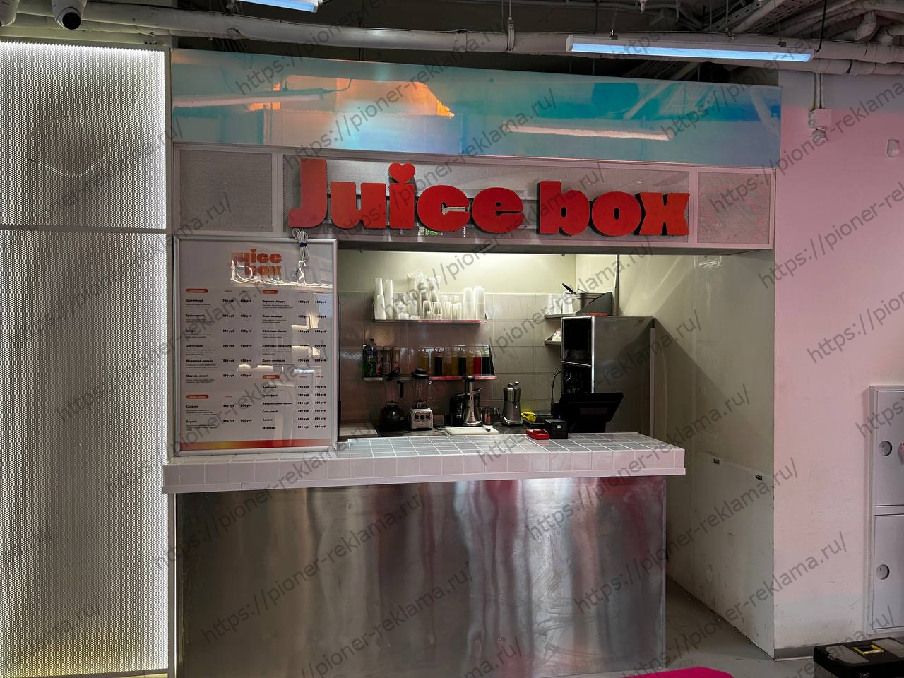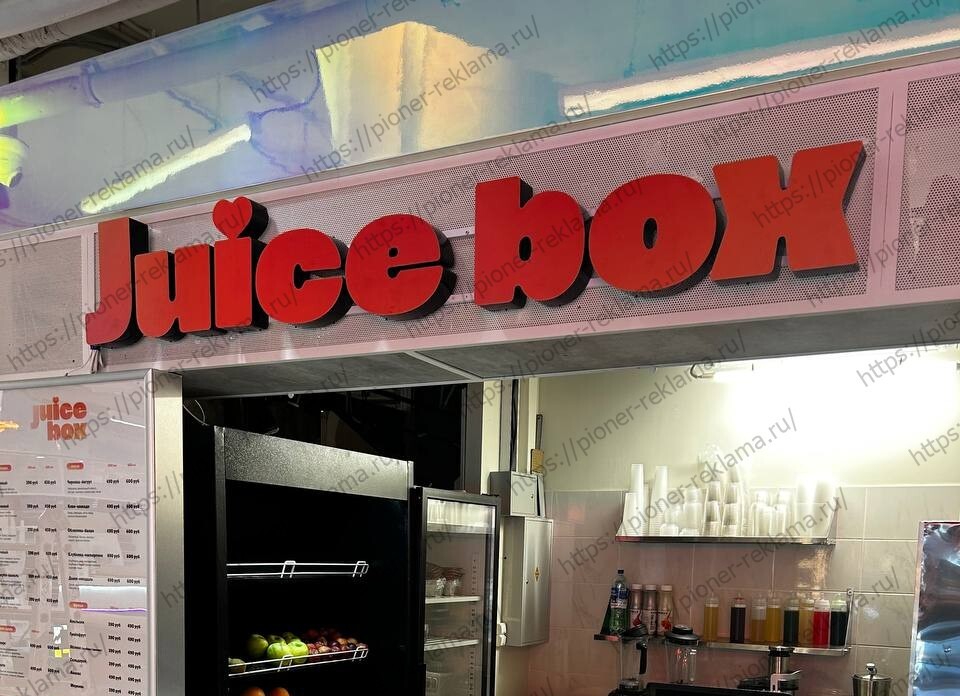 Кейс: вывеска для точки свежевыжатых соков «Juice Box» в торговом центре