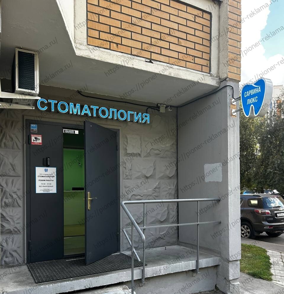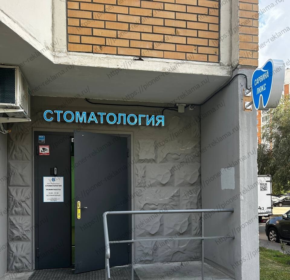 Компания «Центр Рекламных Услуг №1» недавно завершила знаковый проект для стоматологической клиники премиум-сегмента «Сарвина Люкс», расположенной в живописном районе столицы по адресу: г. Москва, ул. Святоозерская, д. 26. Перед нами стояла амбициозная задача: создать презентабельную, долговечную и эстетически безупречную вывеску, которая бы органично вписалась в архитектурный ансамбль здания и одновременно подчеркнула статусное позиционирование клиники. Результат? Объёмные буквы с лицевой подсветкой, которые не просто светятся — они излучают доверие.
