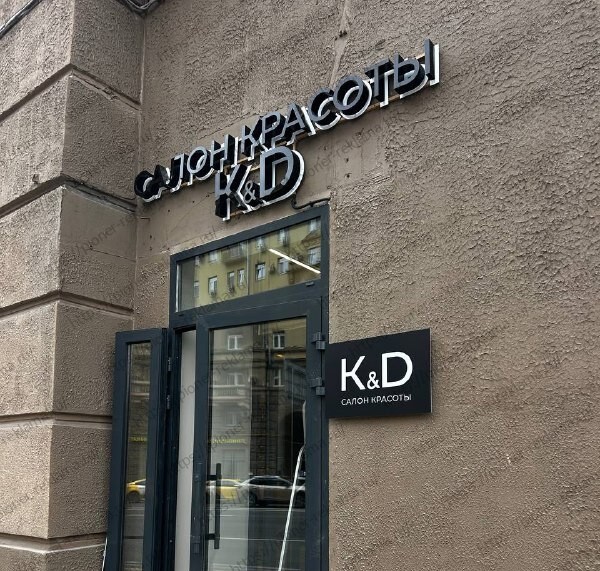 На улице Проспект Мира, 79 в Москве разместился салон красоты K&D — пространство, где каждая деталь говорит о внимании к эстетике. Владельцы поставили перед нами амбициозную задачу: создать презентабельную и долговечную вывеску, которая бы подчеркивала надежность бренда и становилась визитной карточкой заведения на долгие годы. Обычная подсветка не подходила — нужен был эффект, который цепляет взгляд и запоминается.